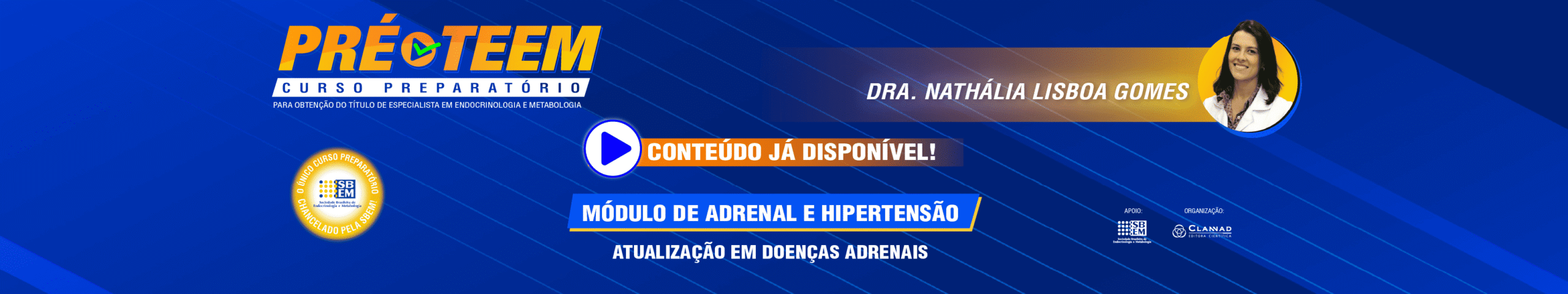 Sim, o CURSO PRÉ-TEEM, realizado pela Clannad Editora Científica, é o único curso de preparação para a prova do Título de Especialista em Endocrinologia e Metabologia (TEEM) apoiado pela Sociedade Brasileira de Endocrinologia e Metabologia (SBEM). O conteúdo é elaborado por médicos titulados e atuantes, ou que já atuaram, nos departamentos da Sociedade